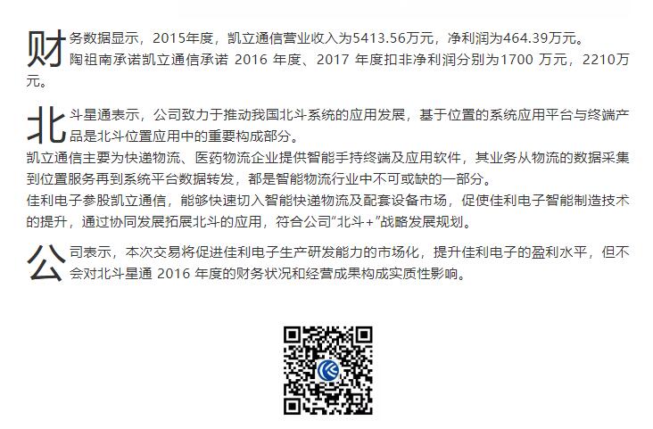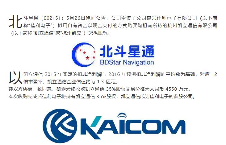 『重磅消息』北斗星通1.3億元收購凱立通信35%股權(quán) 進入智能物流行業(yè)