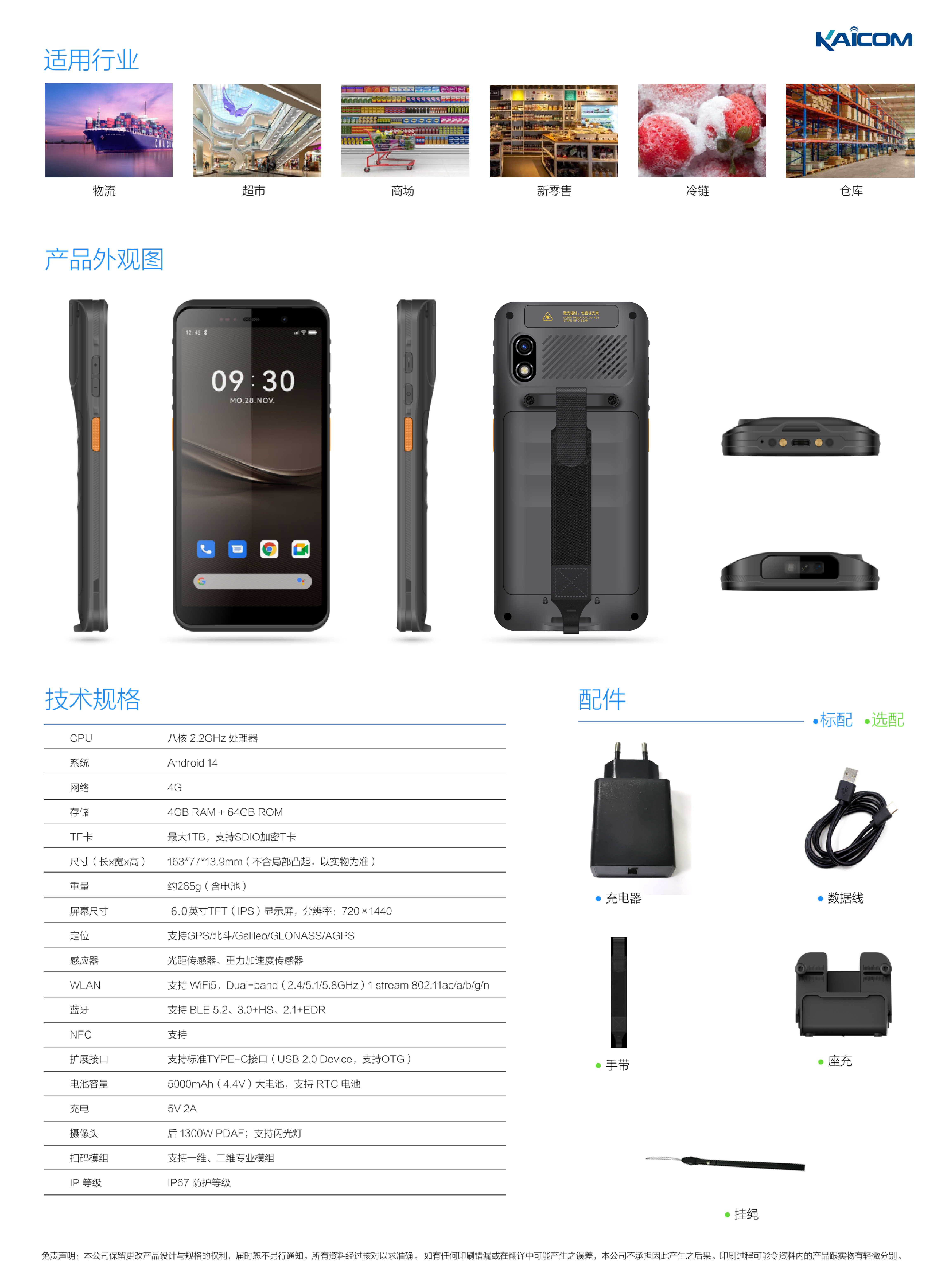 4G智能平臺,精準(zhǔn)定位系統(tǒng)。采用2.2 GHz八核4G高端智能平臺,Android 14系統(tǒng),堅固機身強悍性能且支持多種功能定制。采用工業(yè)級定位芯片及算法方案,支持GPS/北斗/Galileo/GLONASS/AGPS快速準(zhǔn)確掃碼識別。