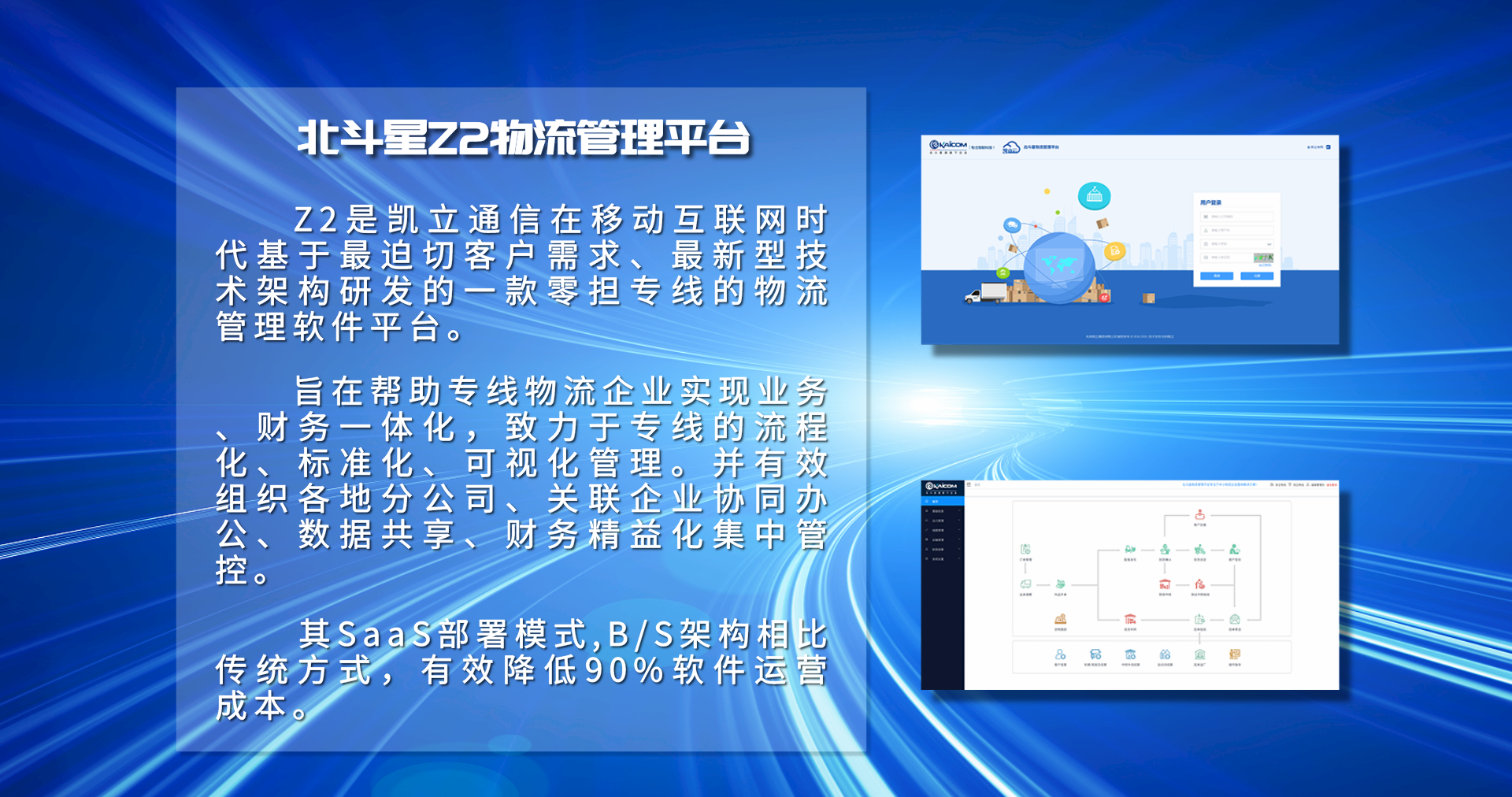 凱立中小物流管理平臺(tái)Z2,是杭州凱立通信在移動(dòng)互聯(lián)網(wǎng)時(shí)代基于最迫切客戶需求、最新型技術(shù)架構(gòu)研發(fā)的一款零擔(dān)專線的物流管理軟件平臺(tái)。