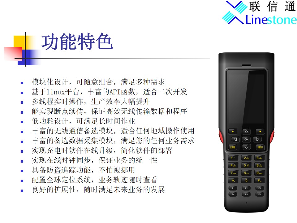 1.5米自由跌落、IP65防塵防水; 4000mAH可拆卸電池,保障全天工作需要;