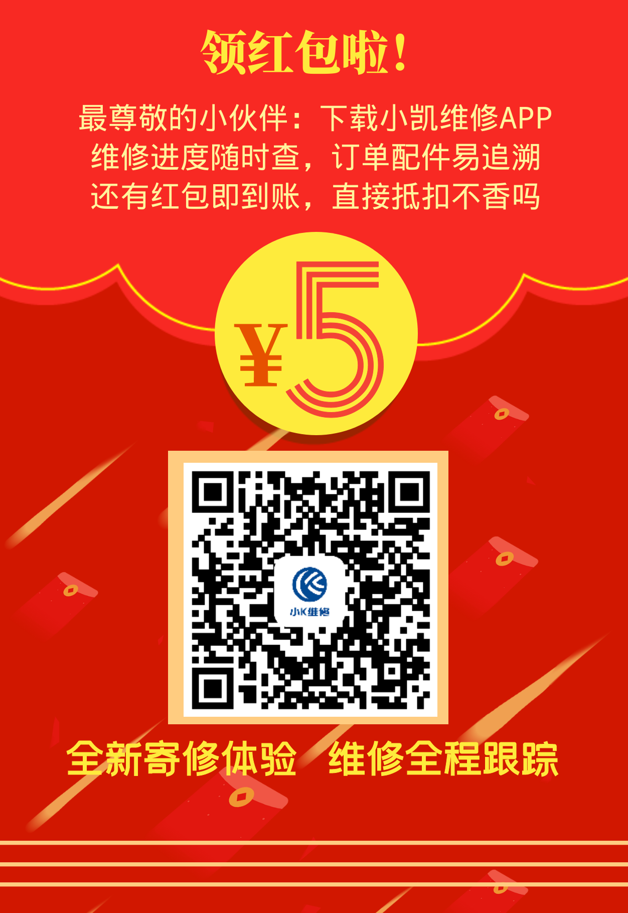 就能領(lǐng)取5元紅包,自動(dòng)充入賬戶,維修付款時(shí)可抵用。